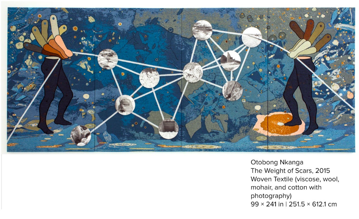 I think artists are best at visualizing SFs that help us see the world differently and perhaps act differently too. Otobong Nkanga, a Nigerian-born visual and performance artist, whose work embodies the middle way that Pema Chodrin offers. She creates her own SFs that blend multiple perspectives, mediums, and histories into her fiber pieces.